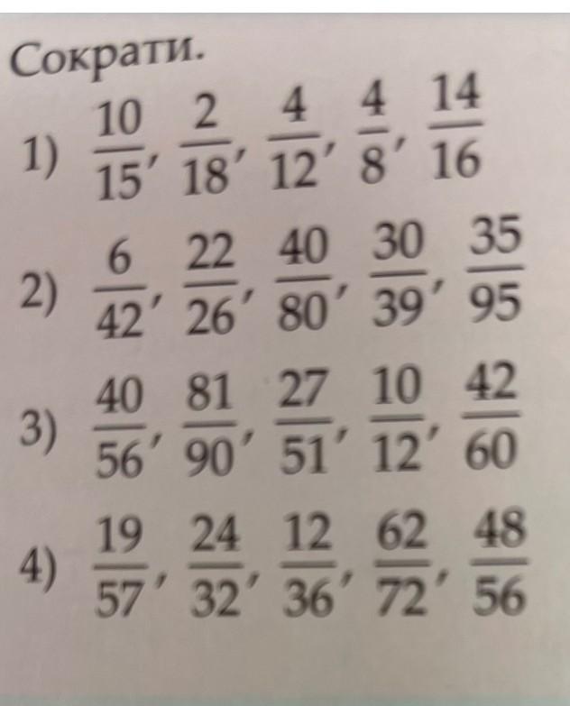 10/15=2/3; 2/18=1/9; 4/12=1/3; 4/8=1/2 14/16=7/8