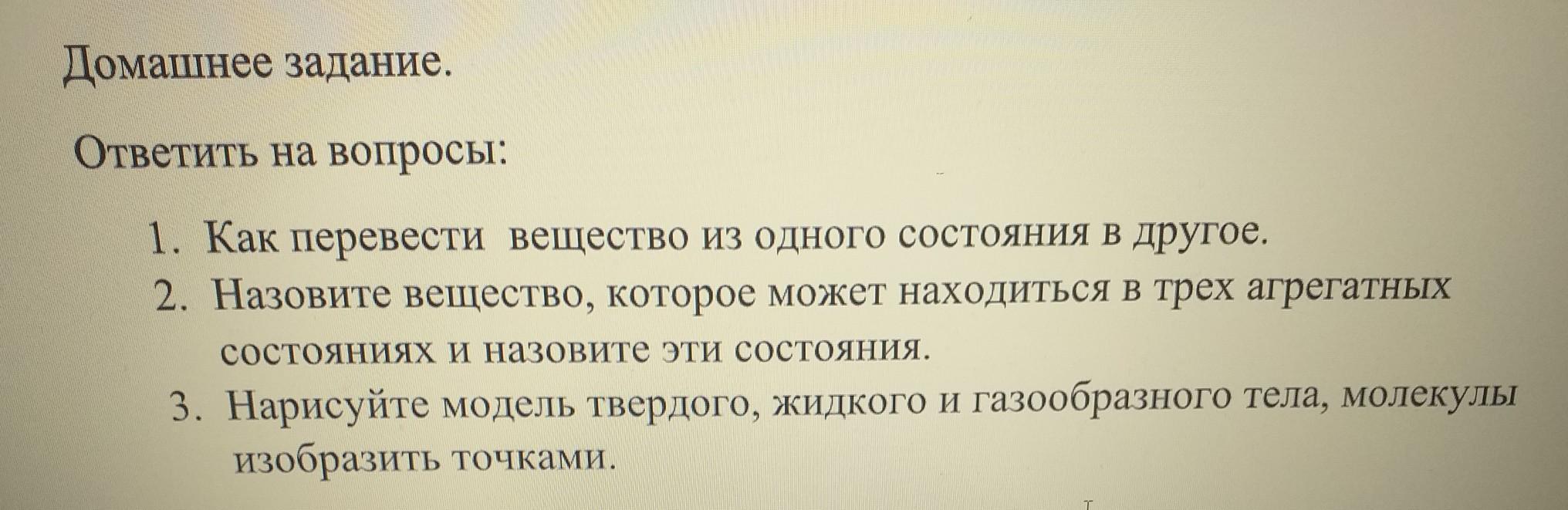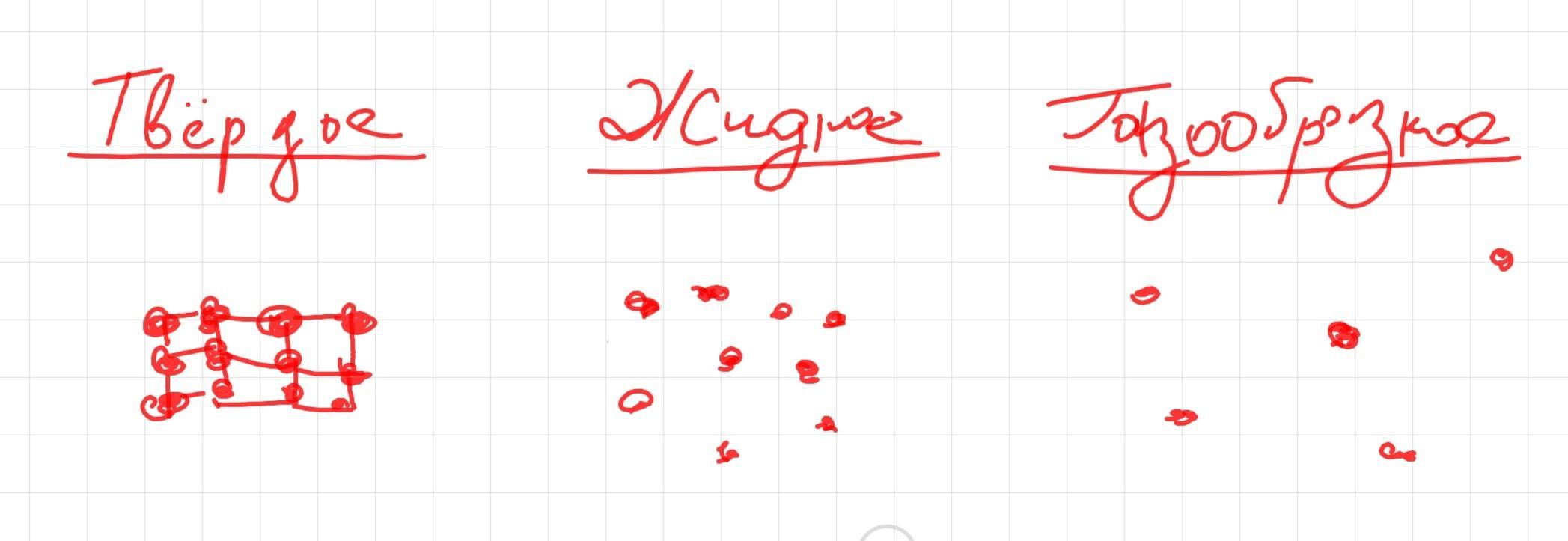 3. Нарисуйте модель твёрдого, жидкого и газообразного тела. Молекулы изобразите точками.