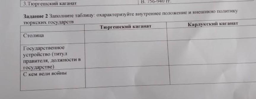 Задание 2 Заполните таблицу: охарактеризуйте внутреннее положение и внешнюю политику ТЮРКСКИХ Государств Огузское государство Западно-тюркский каганат Столица Государственное устройство (титул правителя, должности В государстве) С кем вели войны