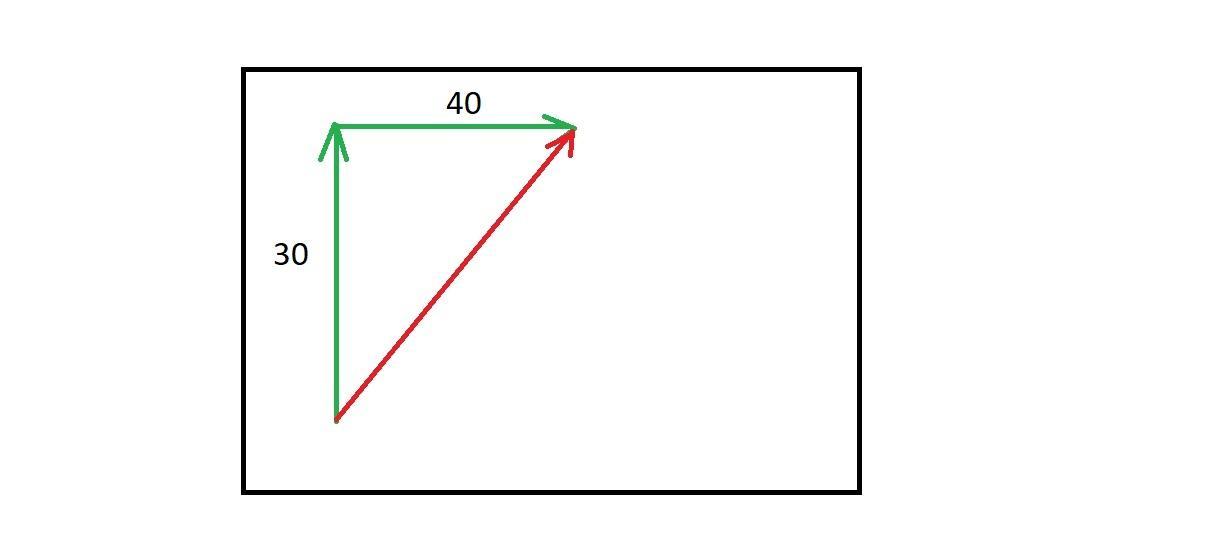 |2.Машинист мостового крана поднимает деталь на высоту 30 м, одновременно перемещая ее поперек цеха на 40 м. Определите результирующее перемещение детали (относительно стен цеха) и изобразите графически вектора перемещения.
