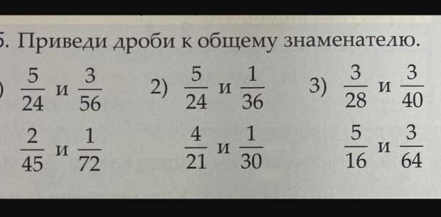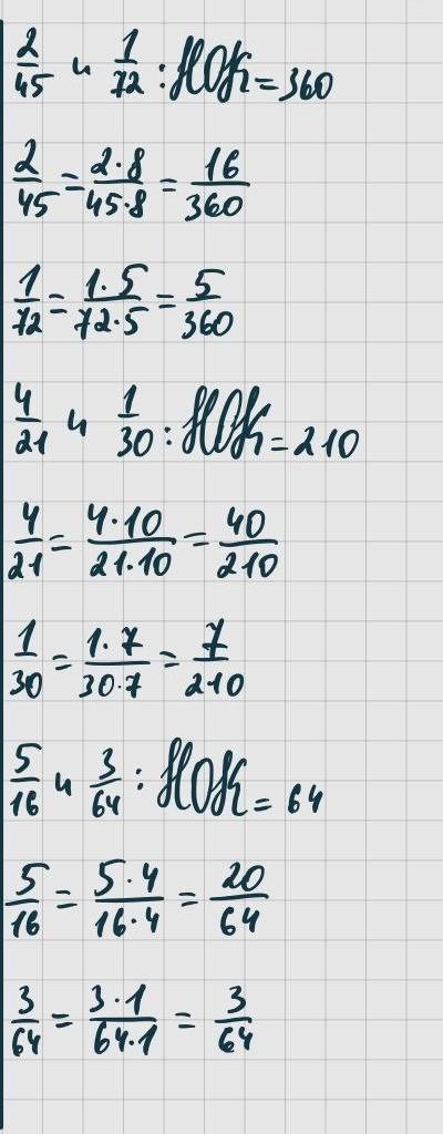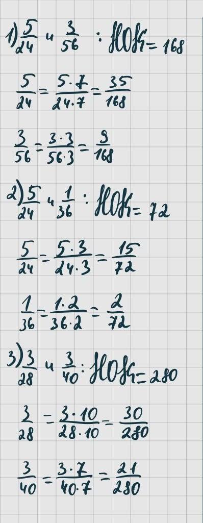 для начала узнаем НОК. Это и будет новым знаменателем дроби. Чтобы получить приведенную дробь к общему знаменателю, нужно поделить НОК на настоящий знаменатель дроби, и на получившееся число умножить и числитель и знаменатель дроби. Надеюсь понятно:) Если нет, напиши в комментах