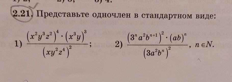 2.21. Представьте одночлен в стандартном виде: (x2*y3*z2*)* . (x3y)3 (xyz) (3"a²b"n): (ab)" , ne ; (За²ь")