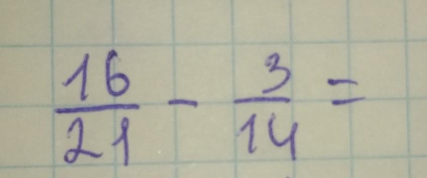 16/21 - 3/14 = (16*2)/(21*2) - (3*3)/(14*3) =