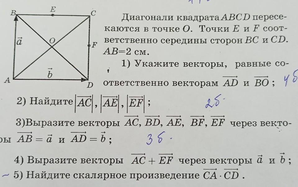 1) Укажите векторы, равные со ответственно векторам AD и Bo: 45