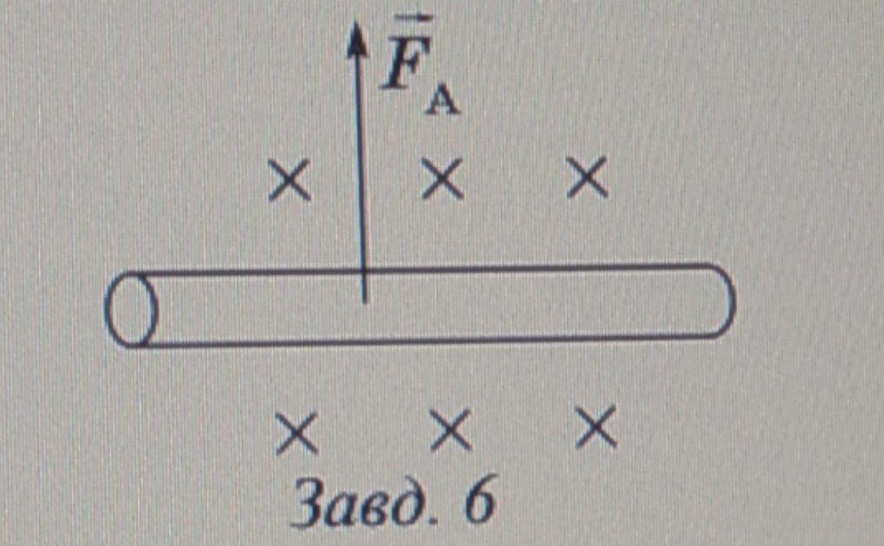 На рисунку зображений провідник зі струмом, що перебуває в магнітному полі. Укажіть