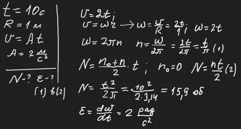 лінійної швидкості від часу задано рівнянням v = Аt, де А = 2 м/с.