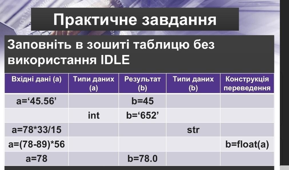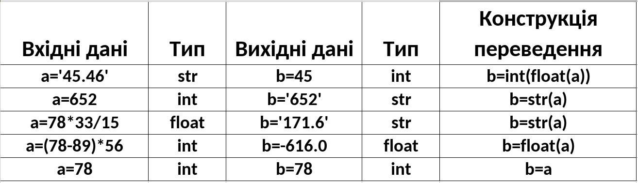Вхідні дані Тип Вихідні дані Тип Конструкція переведення