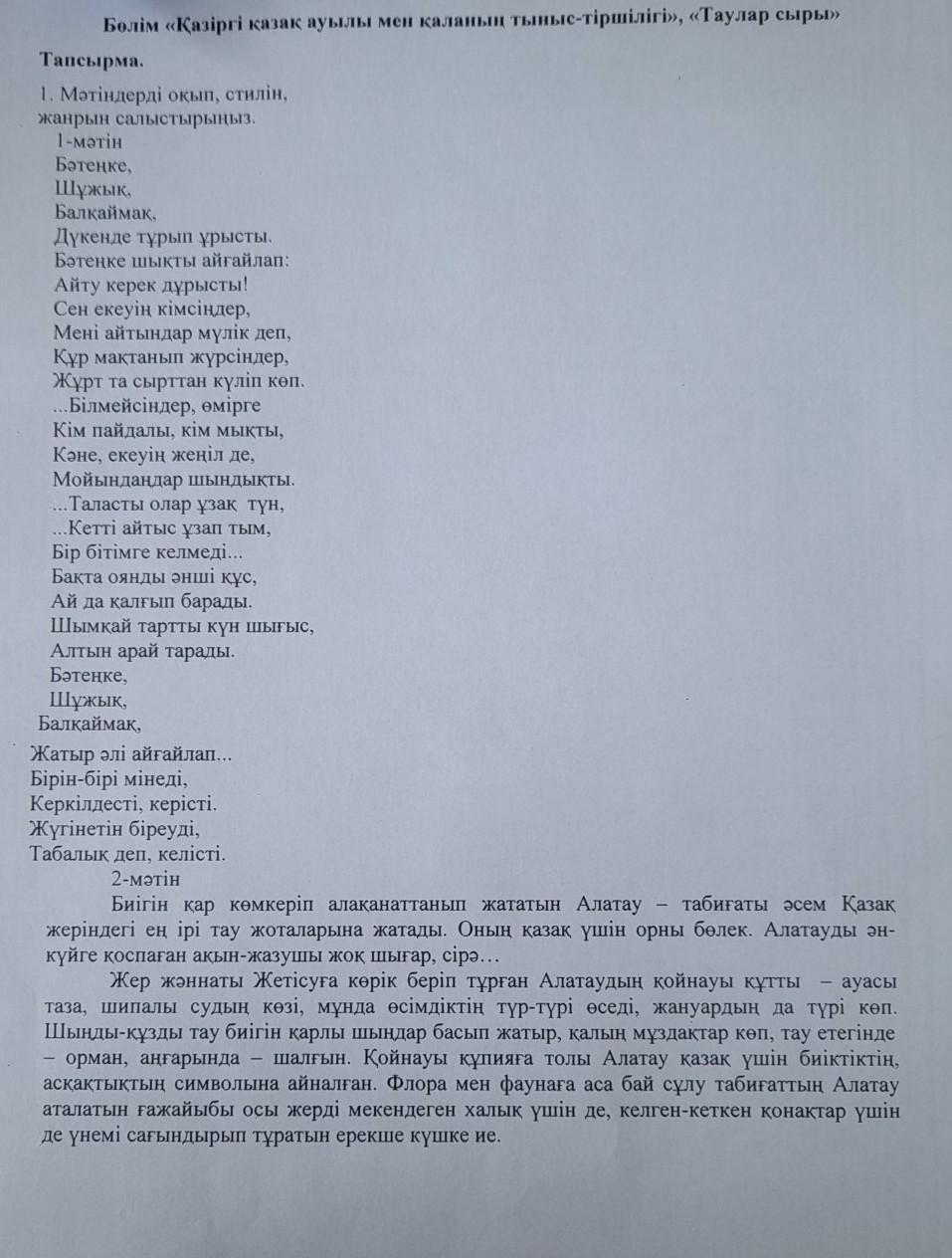 1. мәтіндерді оқып, стилін, жанрын салыстырыңыз