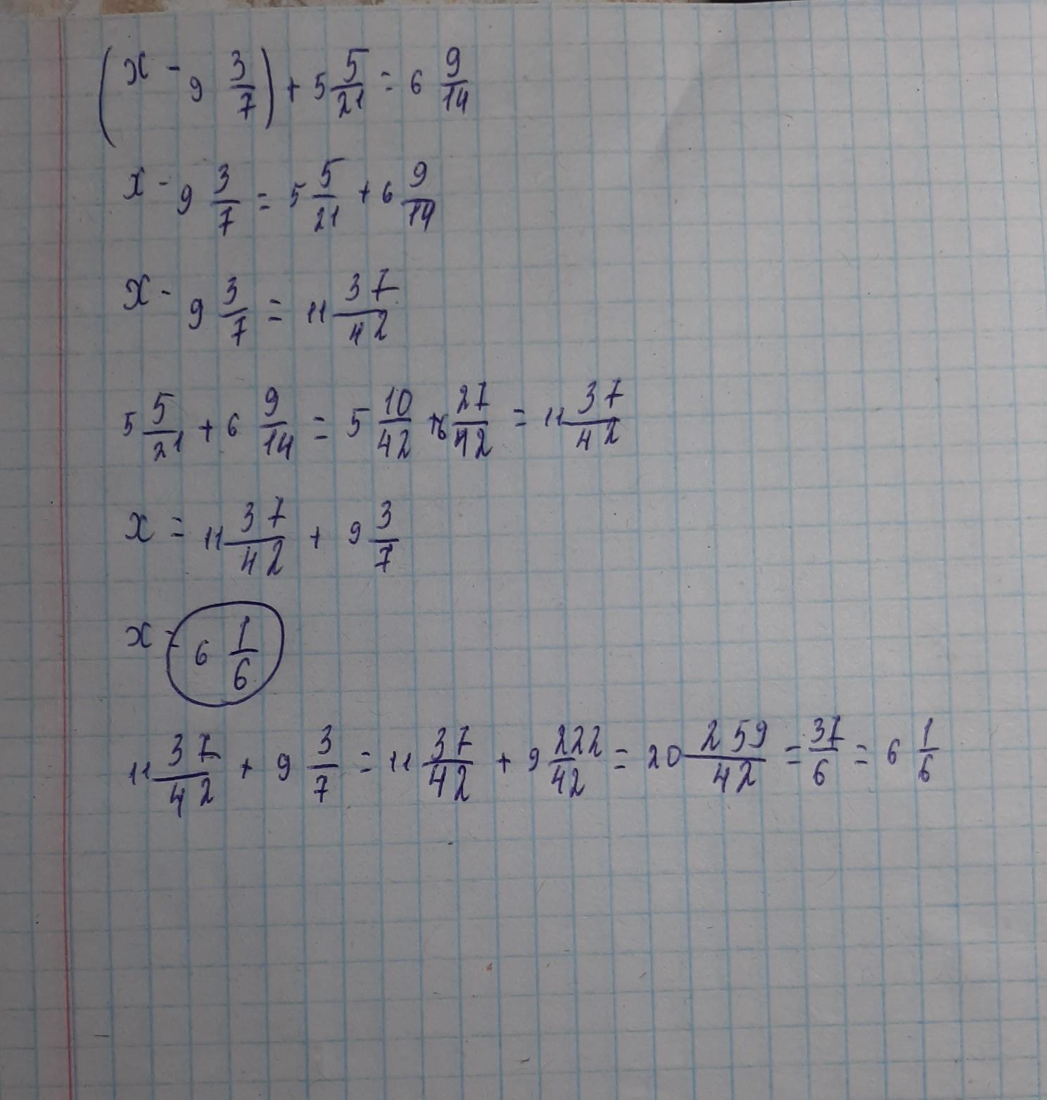 (x-9 3/7) +5 5/21 = 6 9/14;