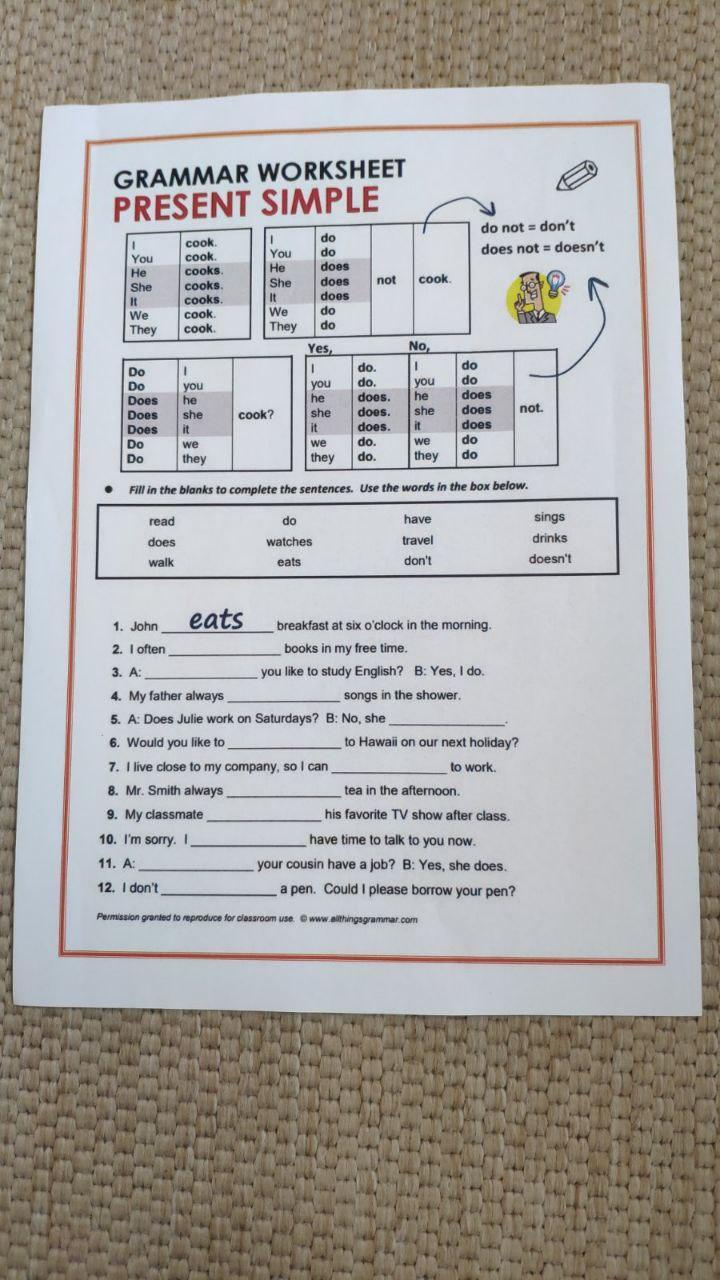 2.read. 3.Do 4.sings 5.doesn't 6.travel 7.walk 8.drinks 9.watches 10. dont 11.Does 12.have