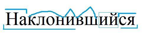 В основу не входит словоизменительная морфема (окончание) и формообразовательный суффикс причастия -вш-. Таким образом, основа в этот слове прерывистая: -наклонися-