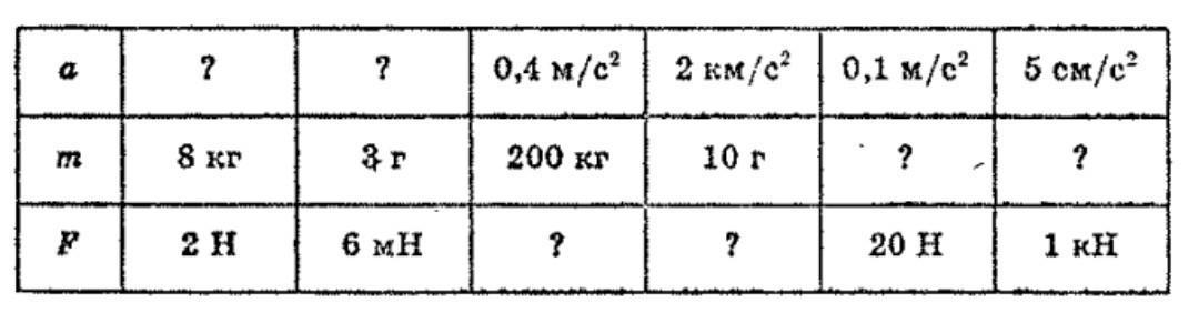 4 Заповніть таблицю, де а прискорення, що його набуває тіло масою м під дією сили f