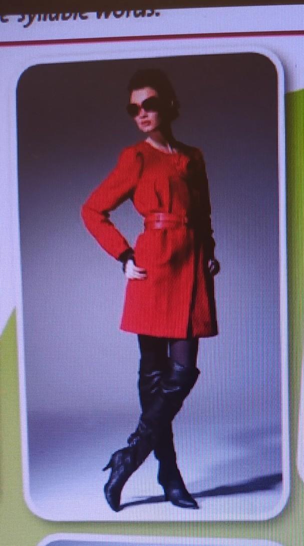 The extraordinarily beautiful girl has good taste, her red coat attracts attention, which is very suitable for women. The girl also pulled on wonderful, nylon tights and the same cool boots.