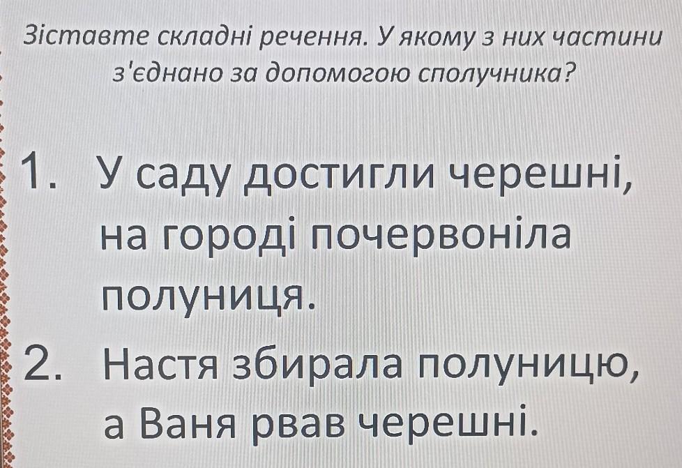 Ответ:Достигли черешні на городі почервоніла полуниця У саду
