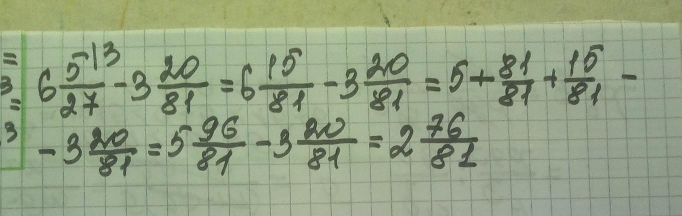6 5/27 - 3 20/81 = 6 15/81 - 3 20/81 =