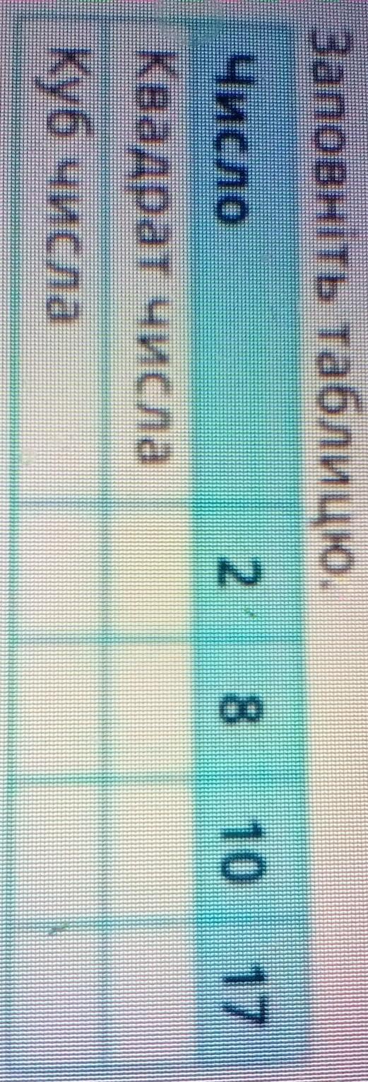 1 Заповніть таблицю. Число Квадрат числа Куб числа 2 8 10 17 допоможіть