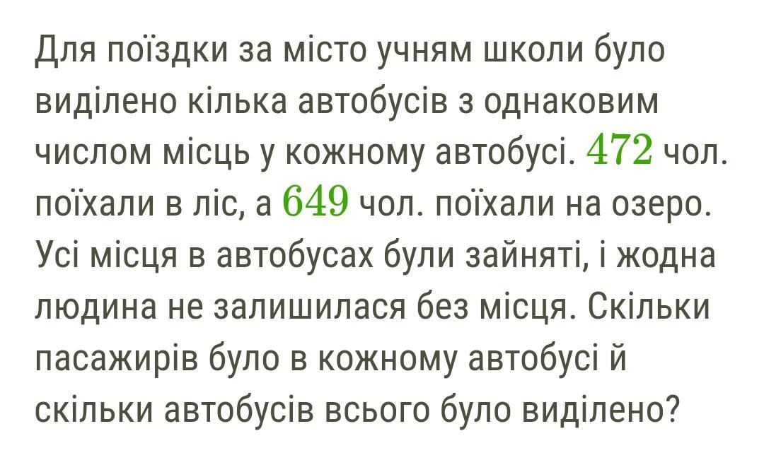 19 автобусів, у кожному з них по 59 людей. (8автобусів у ліс та 11 на озеро)
