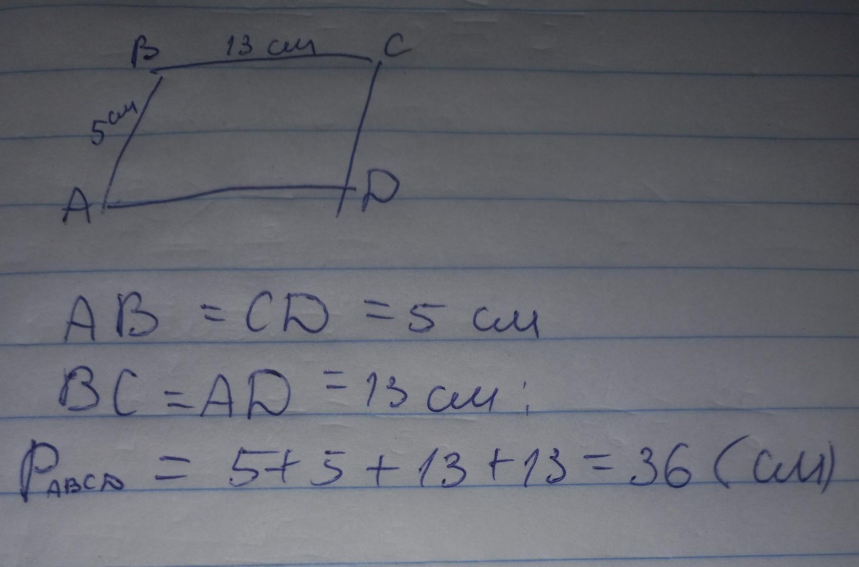 Сторони паралелограма дорівнюють 13см і 5см. Знайдіть перимитр палалелограма