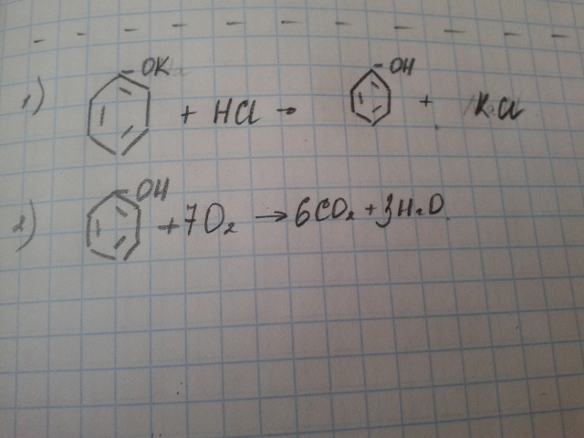 фенолят калия ⇒ фенол ⇒ углекислый газ