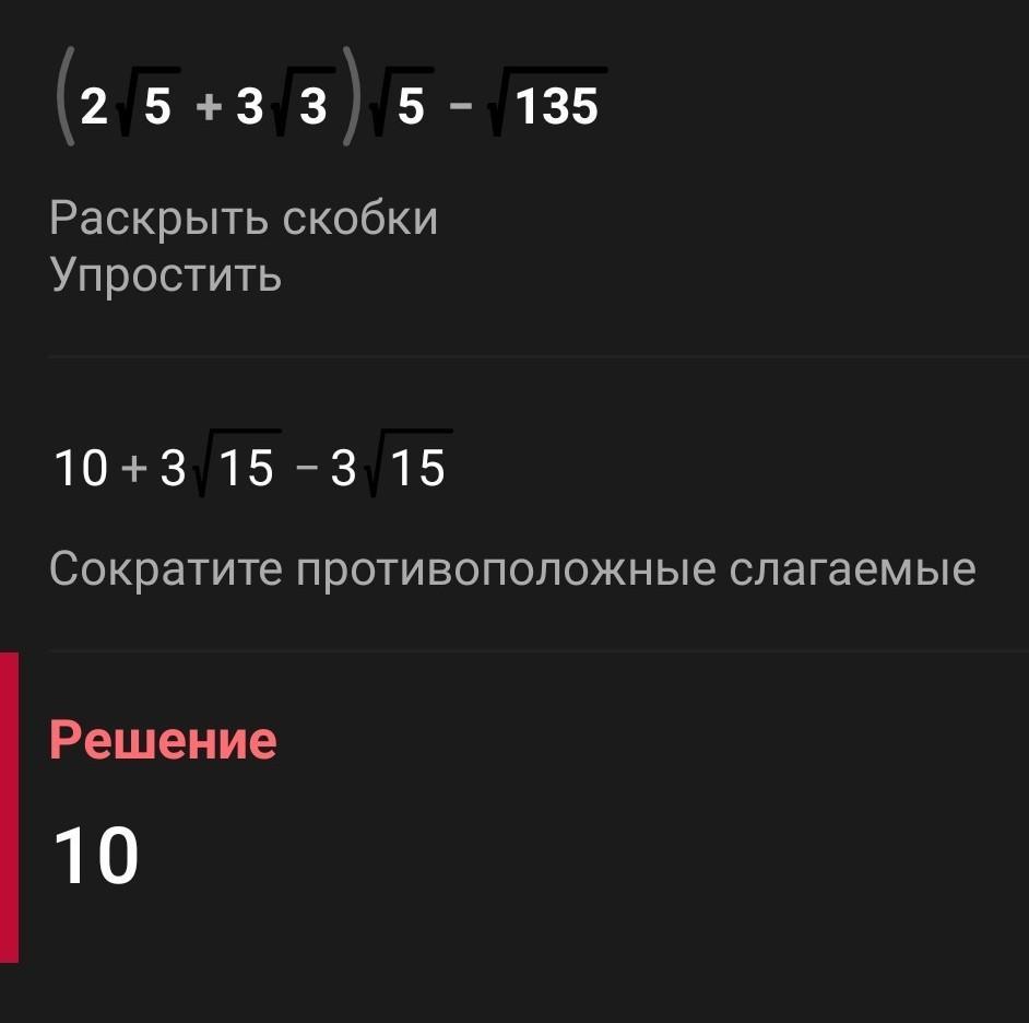 (2√5+3√3)×√5-√135=10+3√15-3√15=10