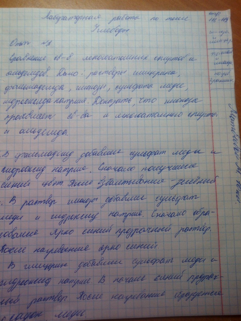 Лабораторная работа по теме углеводы. Дано :растворы глицерина,фальмадегида,глюкозы,сульфата меди,гидроксида натрия. Доказать,что глюкоза проявляет св-ва и многоатомного спирта и альдегида. Надо составить реакции по всем опытам. ПОМОГИТЕ ПРОШУУУУУУУУУУУУУУ!!!!