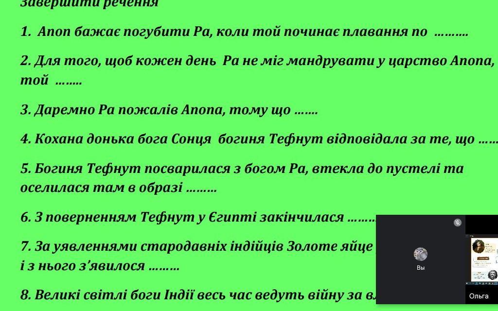 6. З поверненням Тефнут у Єгипті закінчилася тим що теплий дощ заливав спраглу землю, наповнюв висохлі річища життєдайною вологою.