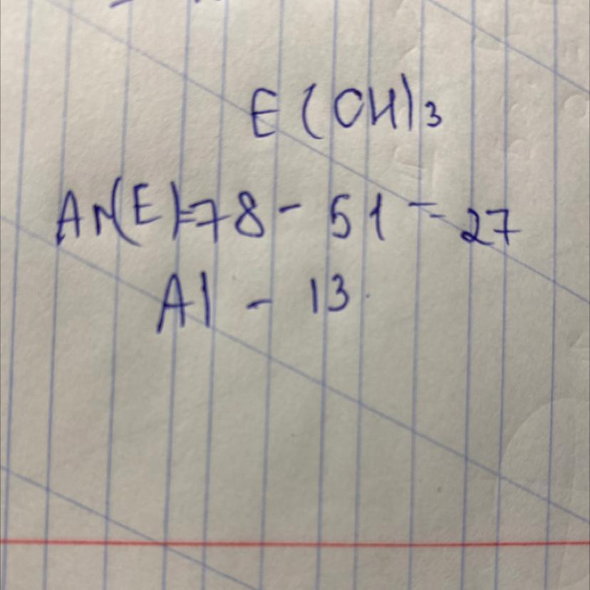 В атомi хiмiчного елемента на зовнішньому енергетичному рiвнi три електрони. Відносна молекулярна маса його гідроксиду 78. Яке протонне число цього хiмiчного елемента? a) 5 б) 13 в) 15 г) 31