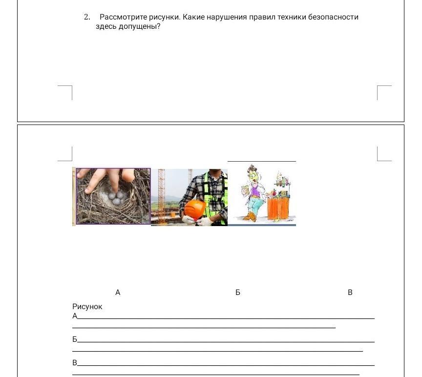Рисунок A Б. 2. Рассмотрите рисунки. Какие нарушения правил техники безопасности здесь допущены? B A Б B