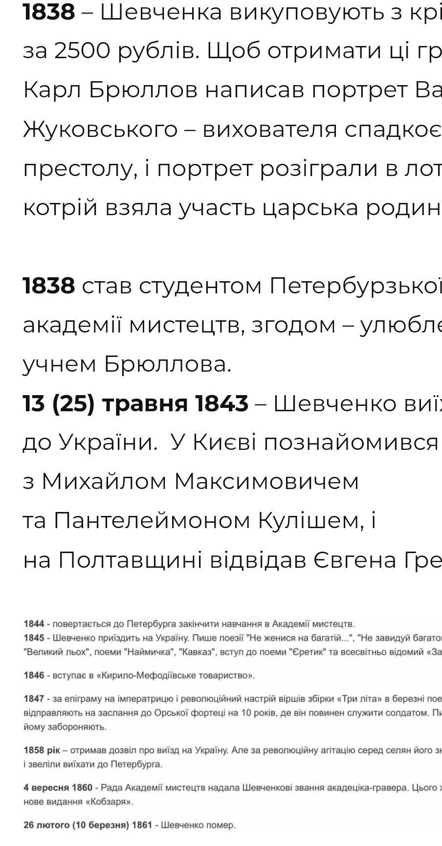 1825 - Смерть батька - Григорія Шевченка. Тарас йде в найми до дяка, згодом тікає щоб навчитися малярству.