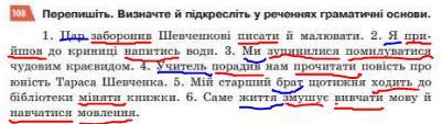 Присудок: заборонив, писати, малювати, прийшов, напитись, зупинилися, помилуватися, порадив, прочитати, ходить, змушує, вивчати, навчатися.