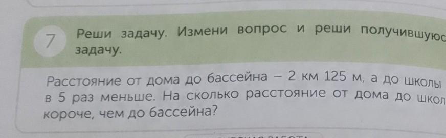 Расстояние от дома до бассейна - 2 км 125 м, а до школы в 5 раз меньше. На сколько расстояние от дома до школы короче, чем до бассейна? Можно прислать фото?