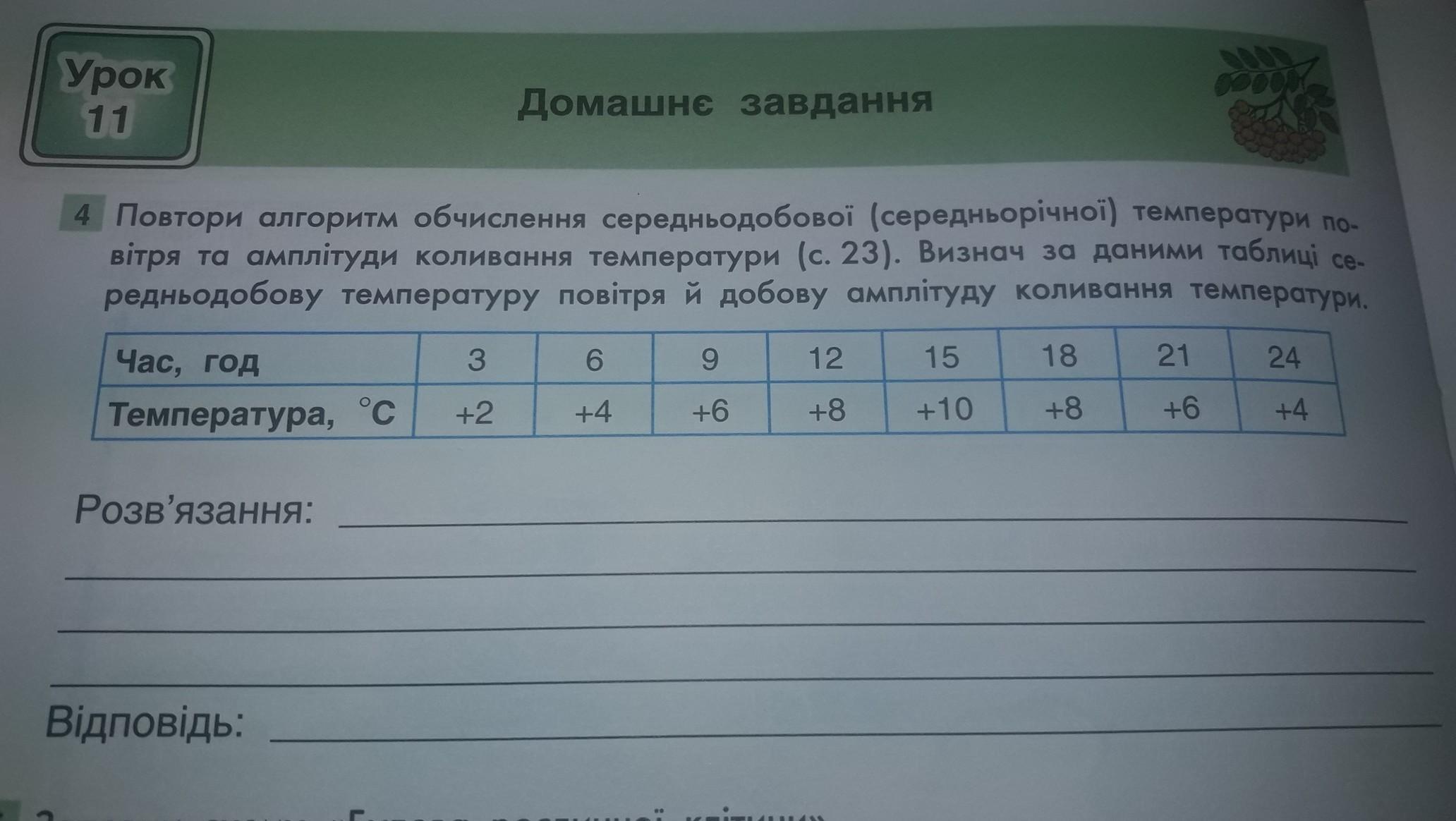 4 Повтори алгоритм обчислення середньодобової (середньорічної) температури по- вітря та амплітуди коливання температури (с. 23). Визнач за даними таблиці се редньодобову температуру повітря й добре і амплітуду коливання температури. ПАМАГИТЕ СРОЧНО!!!! дам 20 балов