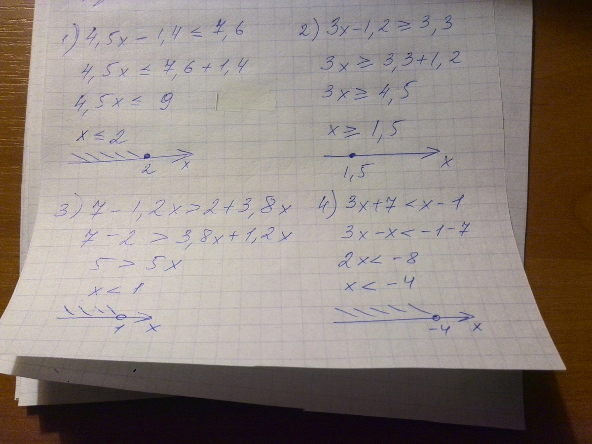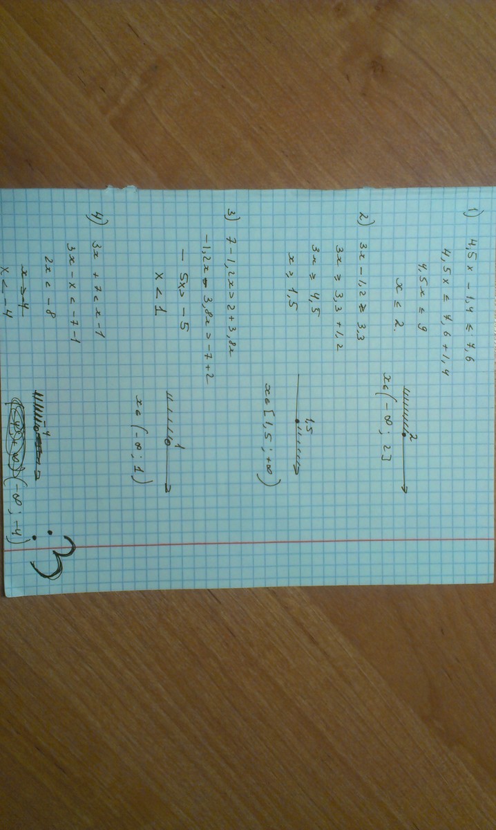 1) 4,5х-1,4<=7,6