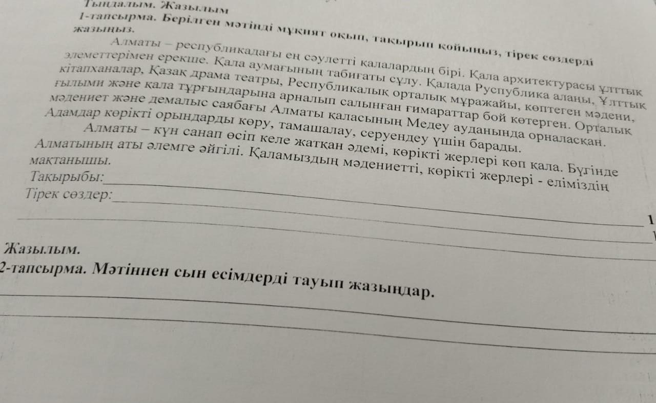 Тірек сөздер: Алматы, Медеу, қала, Республикалық, сұлу.