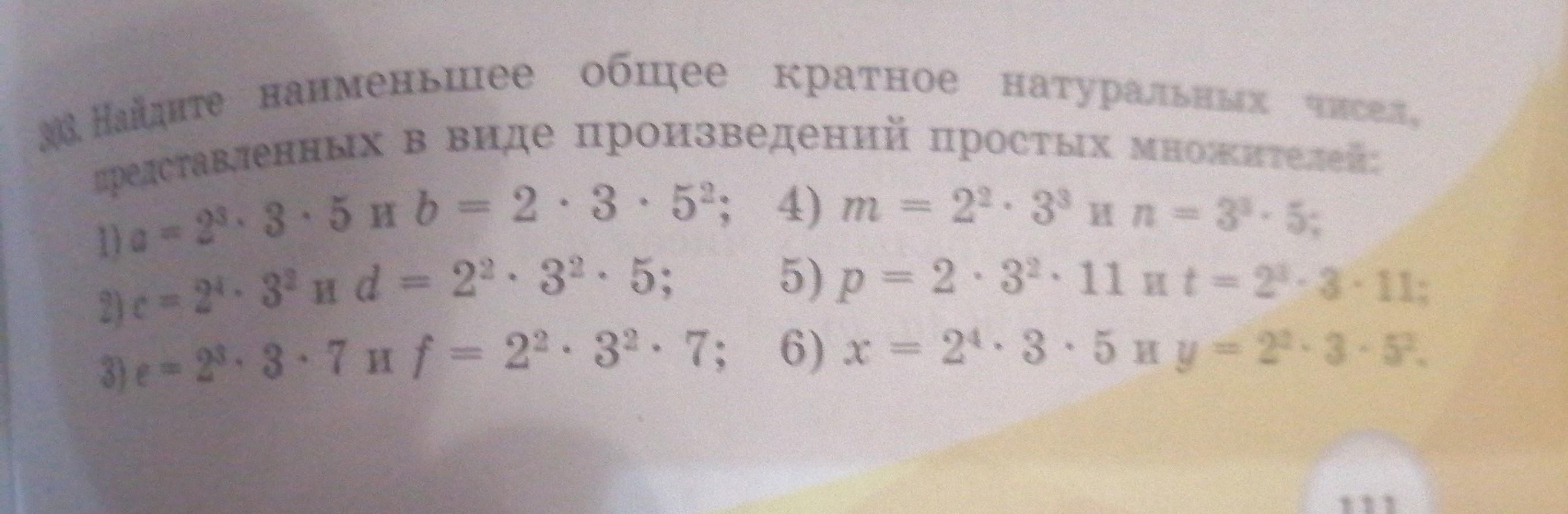 Найдите наименьшее общее кратное натуральных чисел представленных в виде произведения простых множителей, срочно, даю 20 баллов