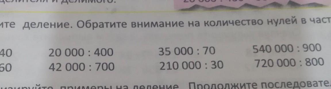 10 Выполните деление. Обратите внимание на количество нулей в част- HOM. 12 000:40 24 000:60 20 000 400 42 000 700 35 000: 70 210 000: 30 540 000:900 720 000: 800