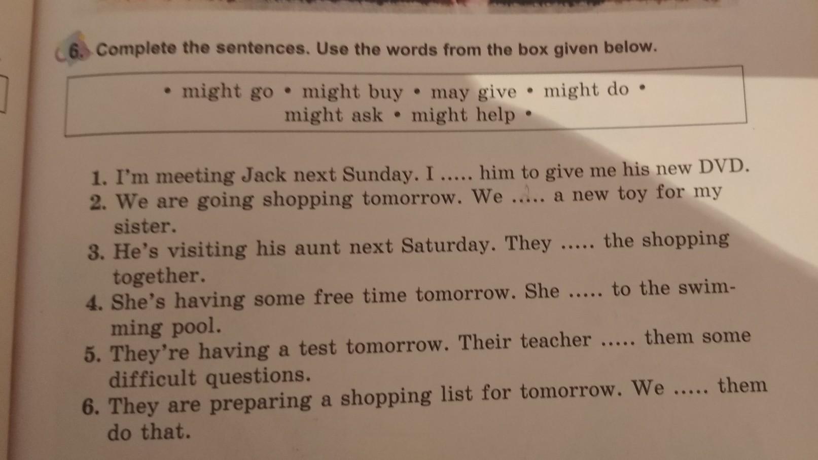 Во втором девочке возможно купят игрушку. В третьем возможно будут идти за покупками ( в интернете есть таблицы с действиями и что с ними использовать: do, go, play ). 4. У девочки есть свободное время, поэтому она может быть пойдет плавать. 5. Учитель может задать сложнф