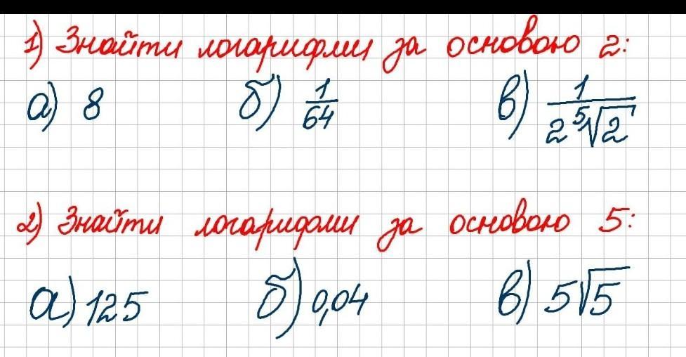 1 ) a ) log₂8 = 3 ; б ) log₂( 1/64 ) = log₂2⁻⁶ = - 6 ; в ) 1/( 2 ⁵√2 ) = 2^(- 6/5 );