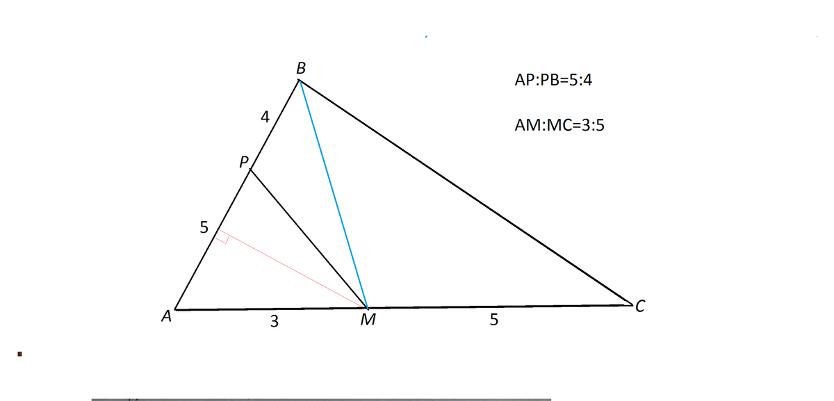 На том же основании площадь ∆ АРМ равна 5/9 площади ∆ АВМ ( у них одна и та же высота из М к АВ) и равна ⁵/₉ от ³/₈S