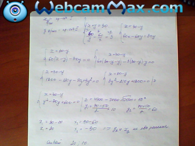 Пожалуйста решите, очень надо . Работая вместе, двое рабочих за час изготавливают 30 деталей. Первый рабочий изготавливает 60 деталей на 3 часа быстрее второго. Сколько деталей в час изготавливает каждый рабочий ?