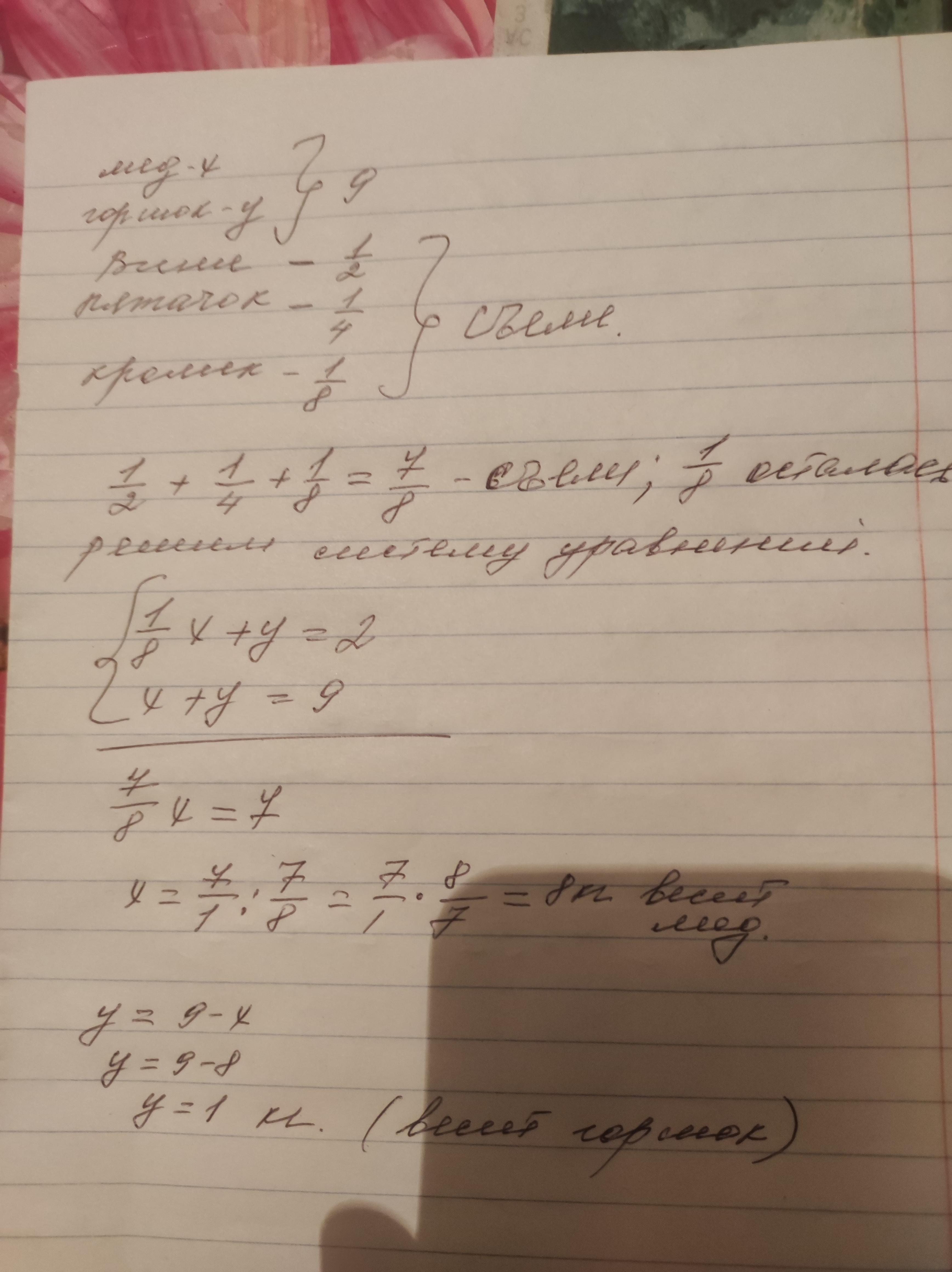 теперь он весит 2 кг. Сколько весит горшочек? (1 балл)