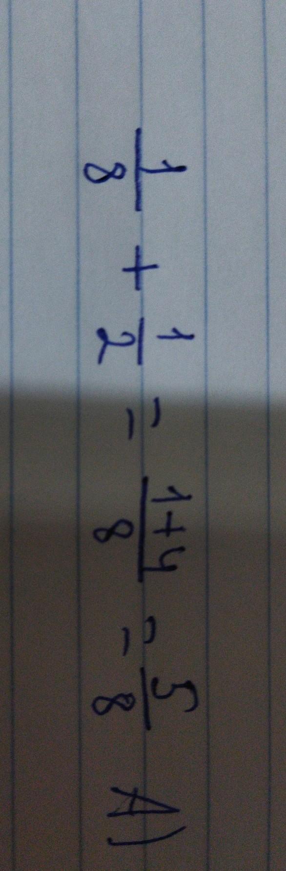 1/8+1/2=(4*1)/(2*4)+1/8=4)8+1/8=5/8