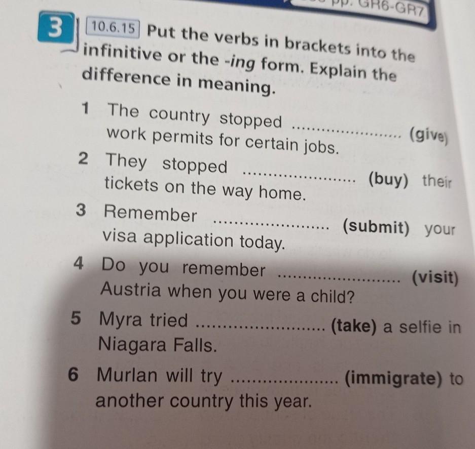 Put the verbs in brackets into the infinitive or the -ing form. Explain the difference in meaning.