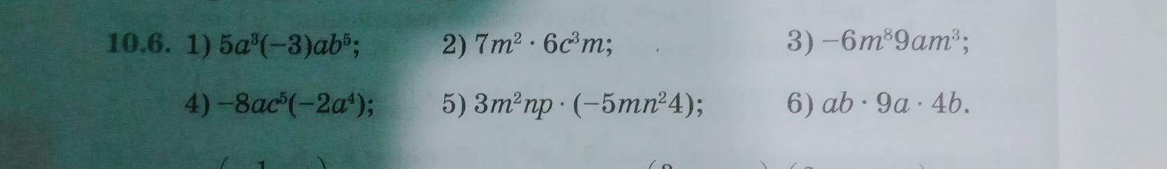1)-15a⁴b⁵;2)42c3m3;3)-63am¹¹;4)16a⁵c⁵;5)-60n³m³p;6)36a²b²