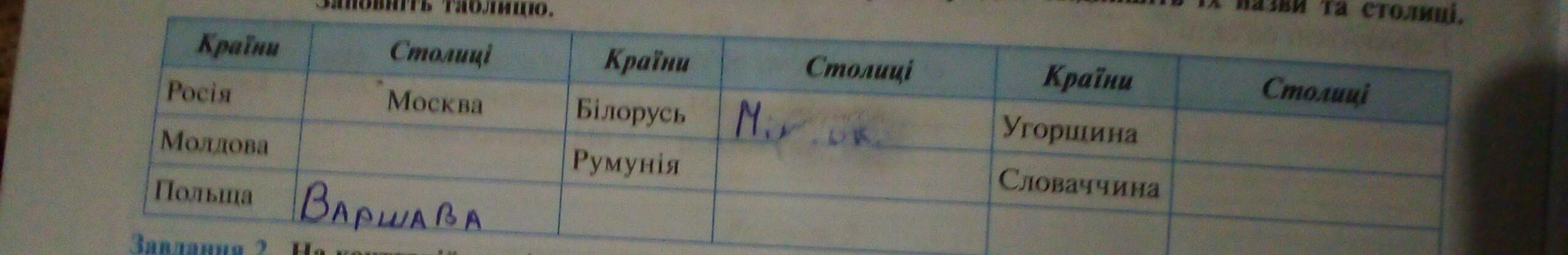 Угории За 1. На котрий карті (с. 7) потопено червоною лінією проведіть державний кордон України державорони кран-сусідів. Підпишіть їх назви та столинi. Заповніть таблицю.