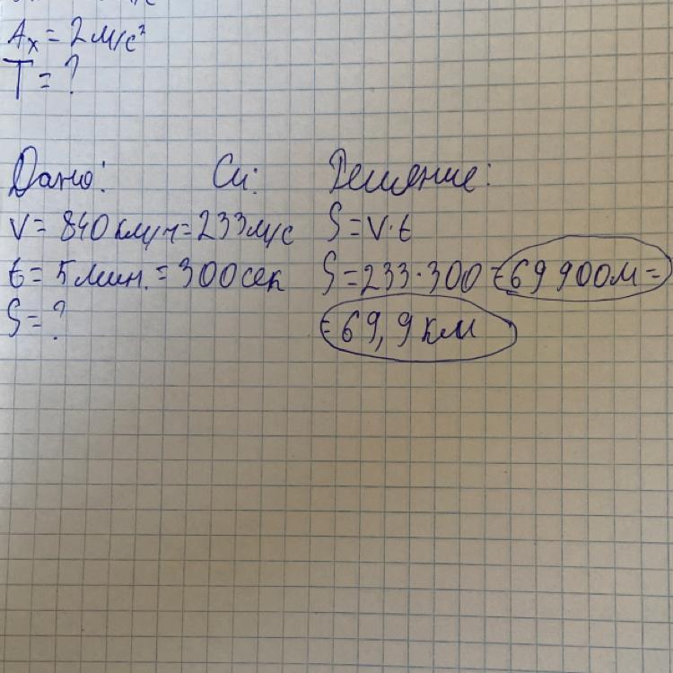 Определите, на какое расстояние простирается лес, если реактивный самолет, движущийся со скоростью 840 км/ч, пролетел над лесом за 5 минут?Пожалуйста, помогите мне