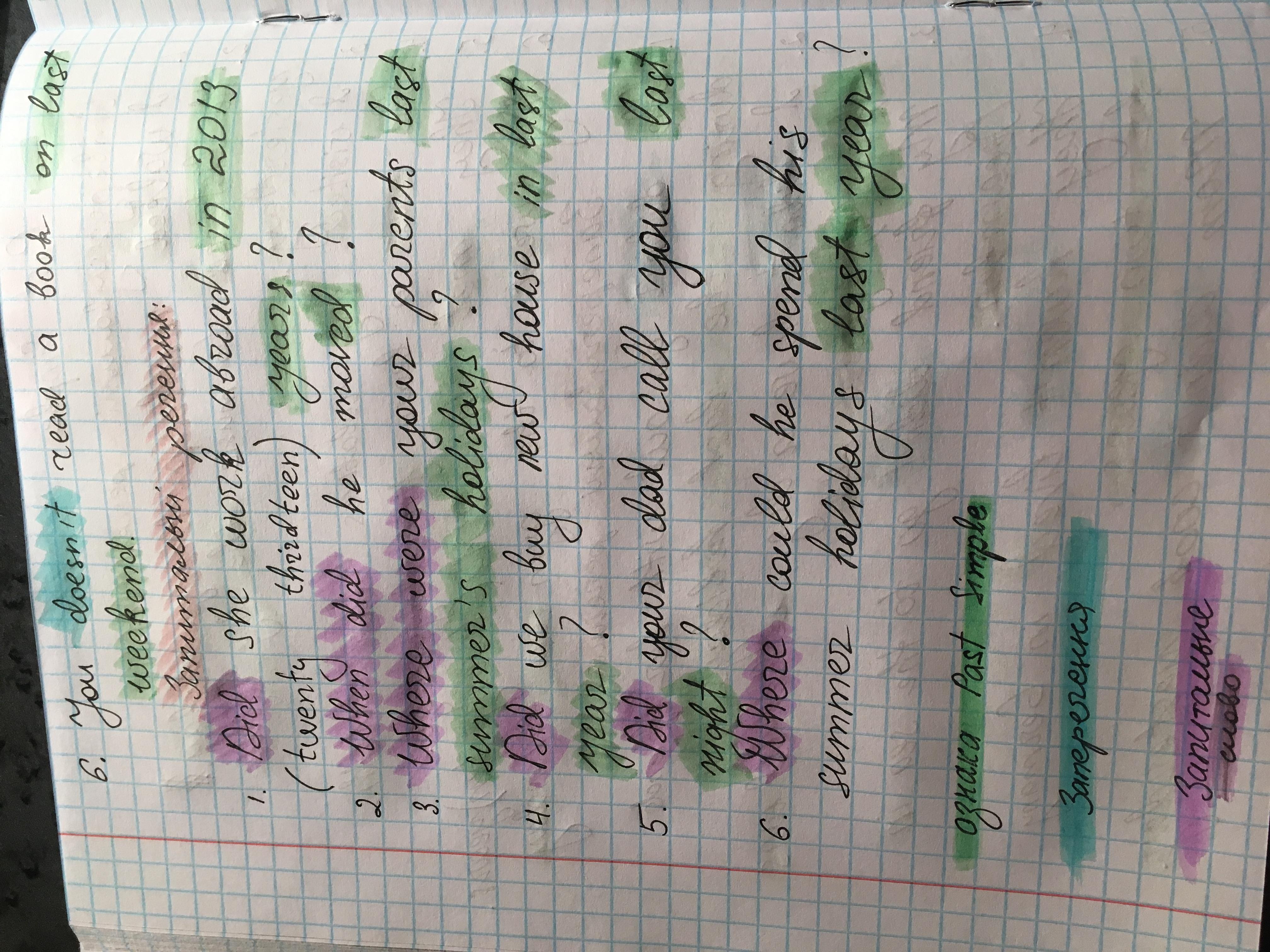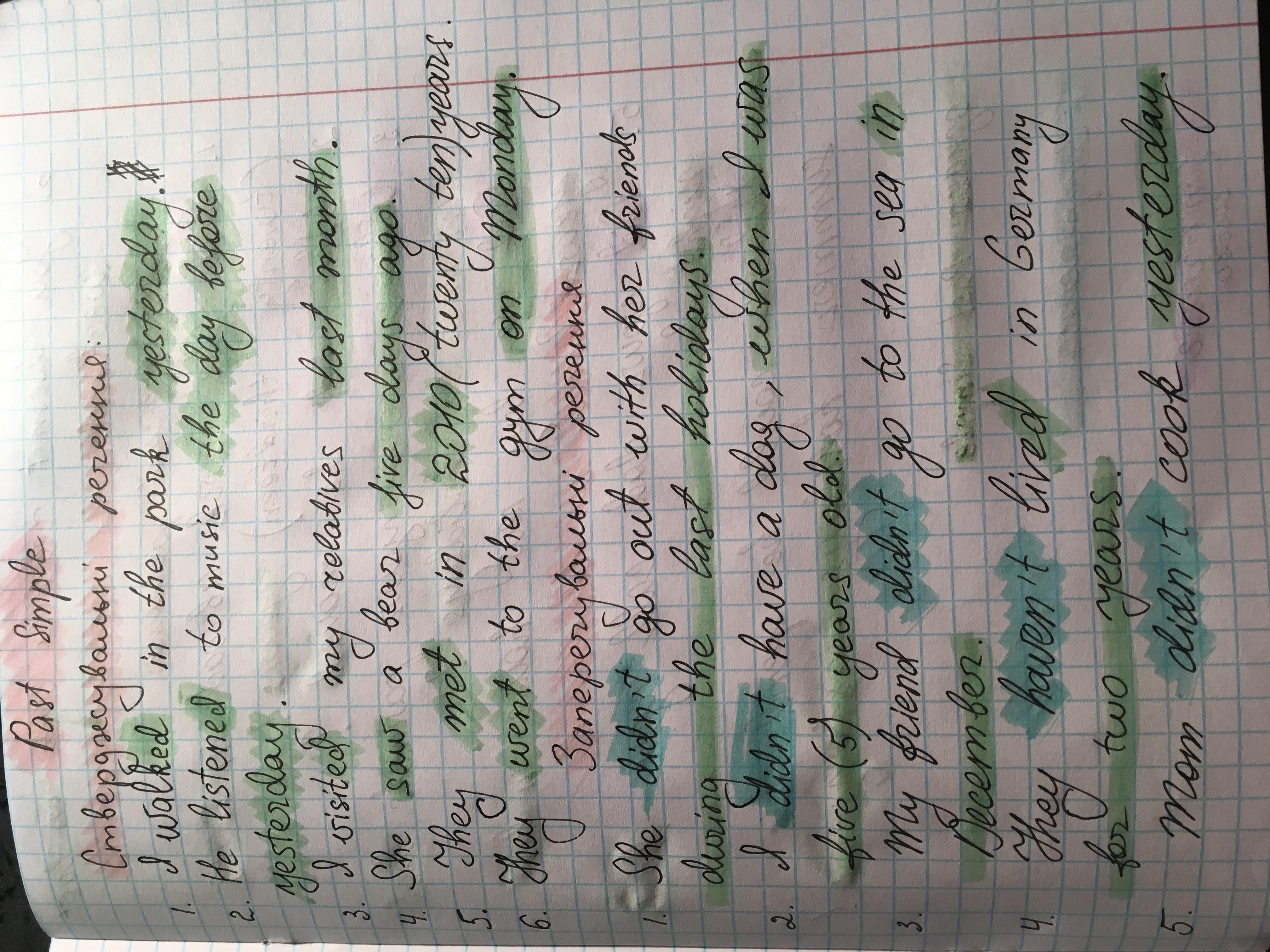 Складіть речення в Past Simple з key word, 6 стверджувальних речень, 6 заперечувальних та 6 запитальних