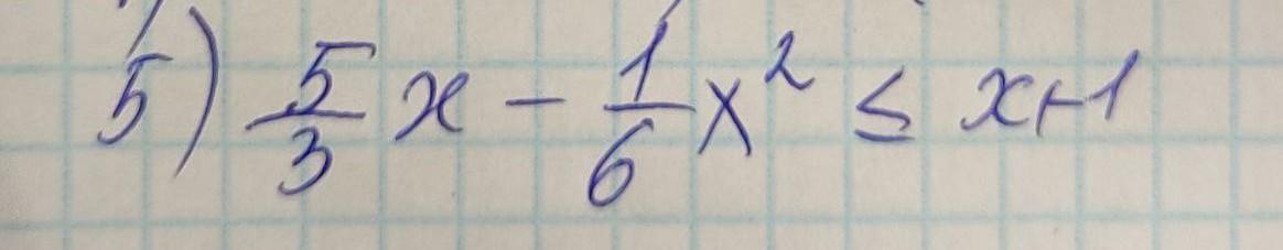 -1/6х²+2/3х-1<=0 Умножим на 6,получим: