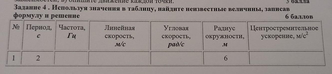 задание 4 используя значения в таблицу,найдите неизвестные величины,записав формулу и решение