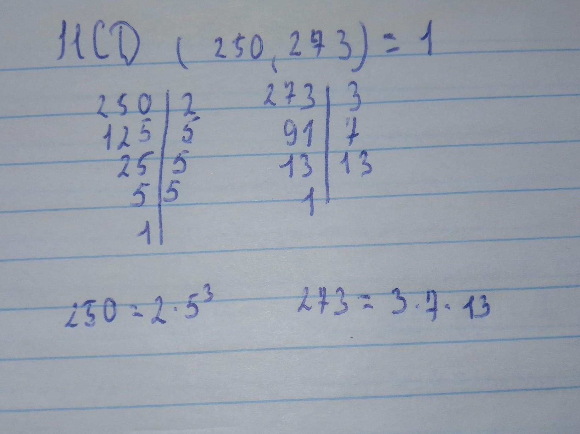 числа що мають НСД 1 називають взаємно простим, отже для виконання завдання потрібно знайти НСД чисел 250 та 273